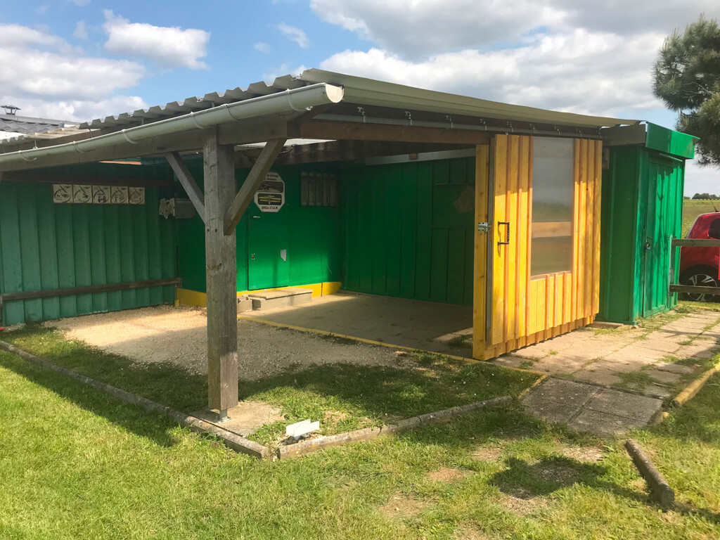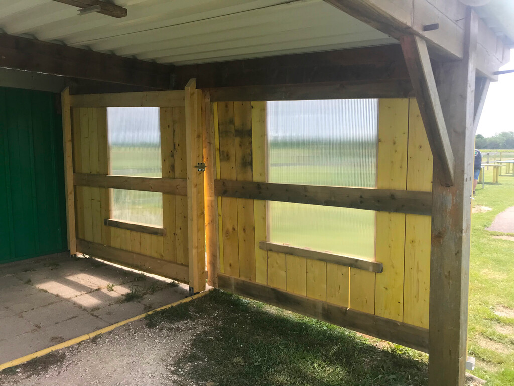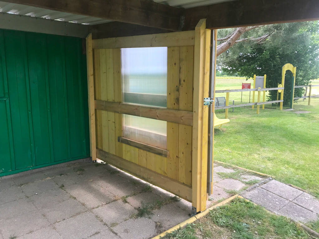 Pour ceux qui ne sont pas encore allé au terrain, une porte coupe vent coulissante a été récemment installée.